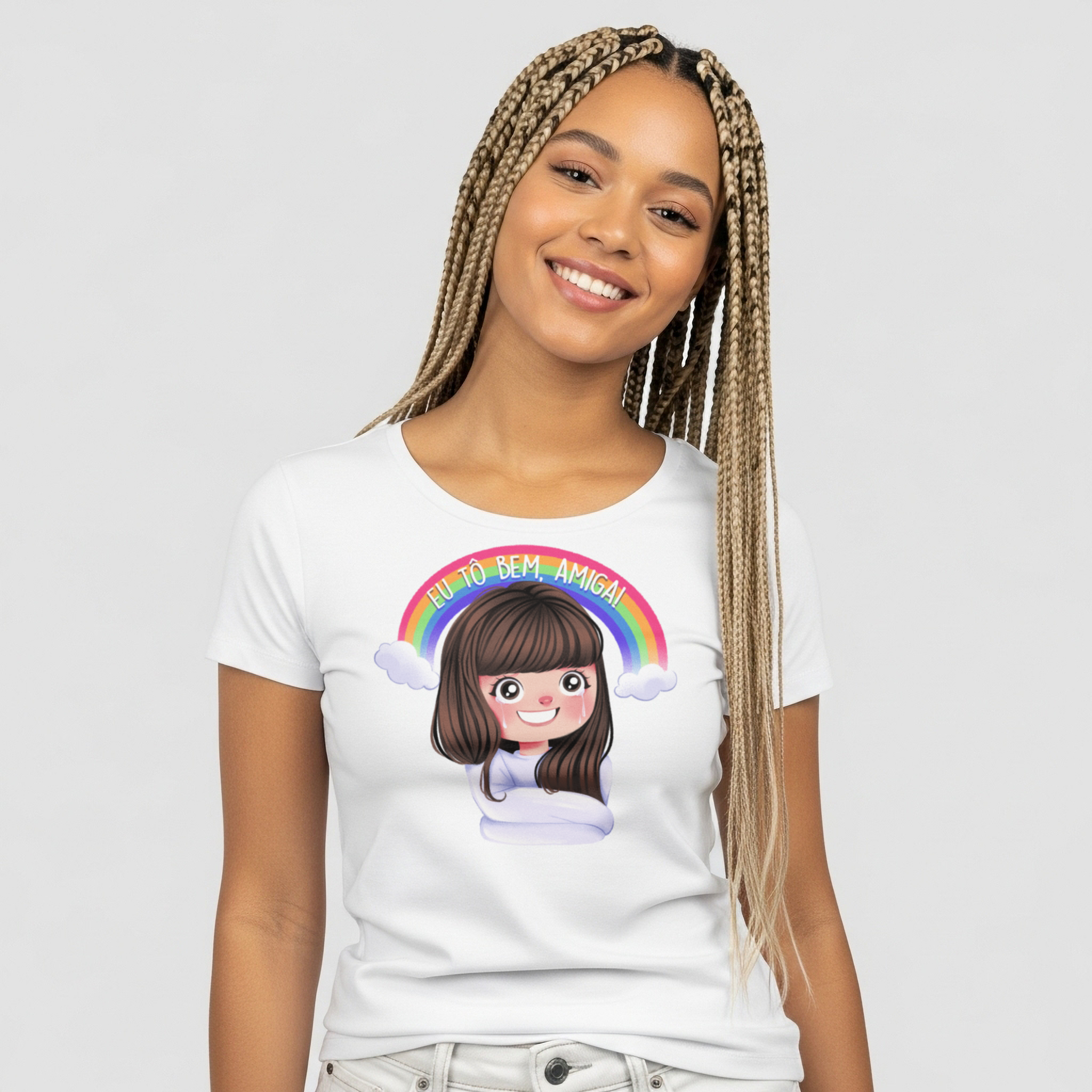 Nada grita mais "saúde mental em dia" do que a clássica cena de Sílvia (Alinne Moraes) em Duas Caras, sendo internada com uma camisa de força… sorrindo. A camiseta "Eu Tô Bem, Amiga!" transforma esse momento icônico em uma peça cheia de humor ácido e ironia sobre as pressões da vida moderna. É o look perfeito para aqueles dias em que o caos reina, mas você insiste que está tudo sob controle (mesmo que claramente não esteja). Ideal para fãs de novelas, memes inesquecíveis e quem adora um toque dramático no dia a dia.