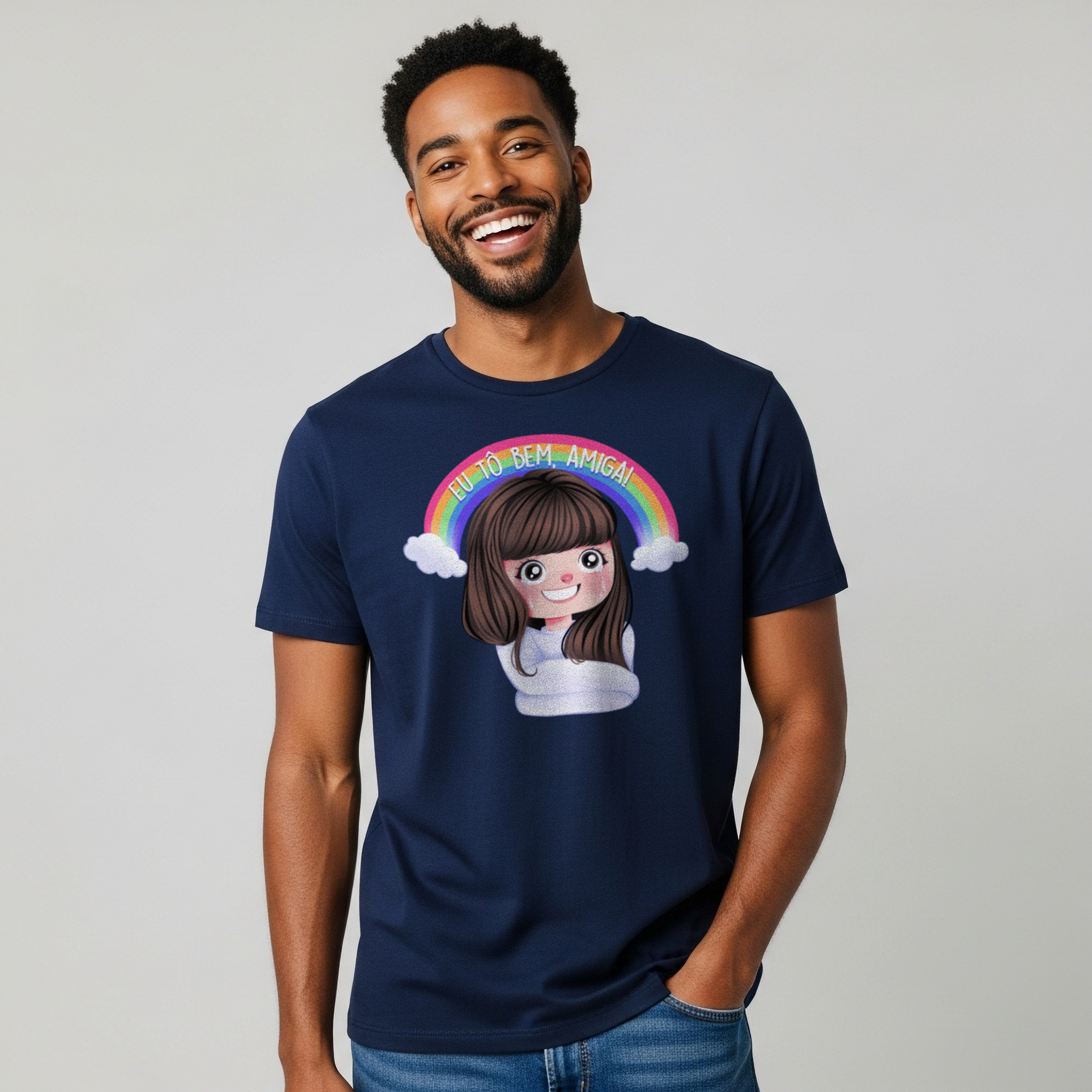 Nada grita mais "saúde mental em dia" do que a clássica cena de Sílvia (Alinne Moraes) em Duas Caras, sendo internada com uma camisa de força… sorrindo. A camiseta "Eu Tô Bem, Amiga!" transforma esse momento icônico em uma peça cheia de humor ácido e ironia sobre as pressões da vida moderna. É o look perfeito para aqueles dias em que o caos reina, mas você insiste que está tudo sob controle (mesmo que claramente não esteja). Ideal para fãs de novelas, memes inesquecíveis e quem adora um toque dramático no dia a dia.