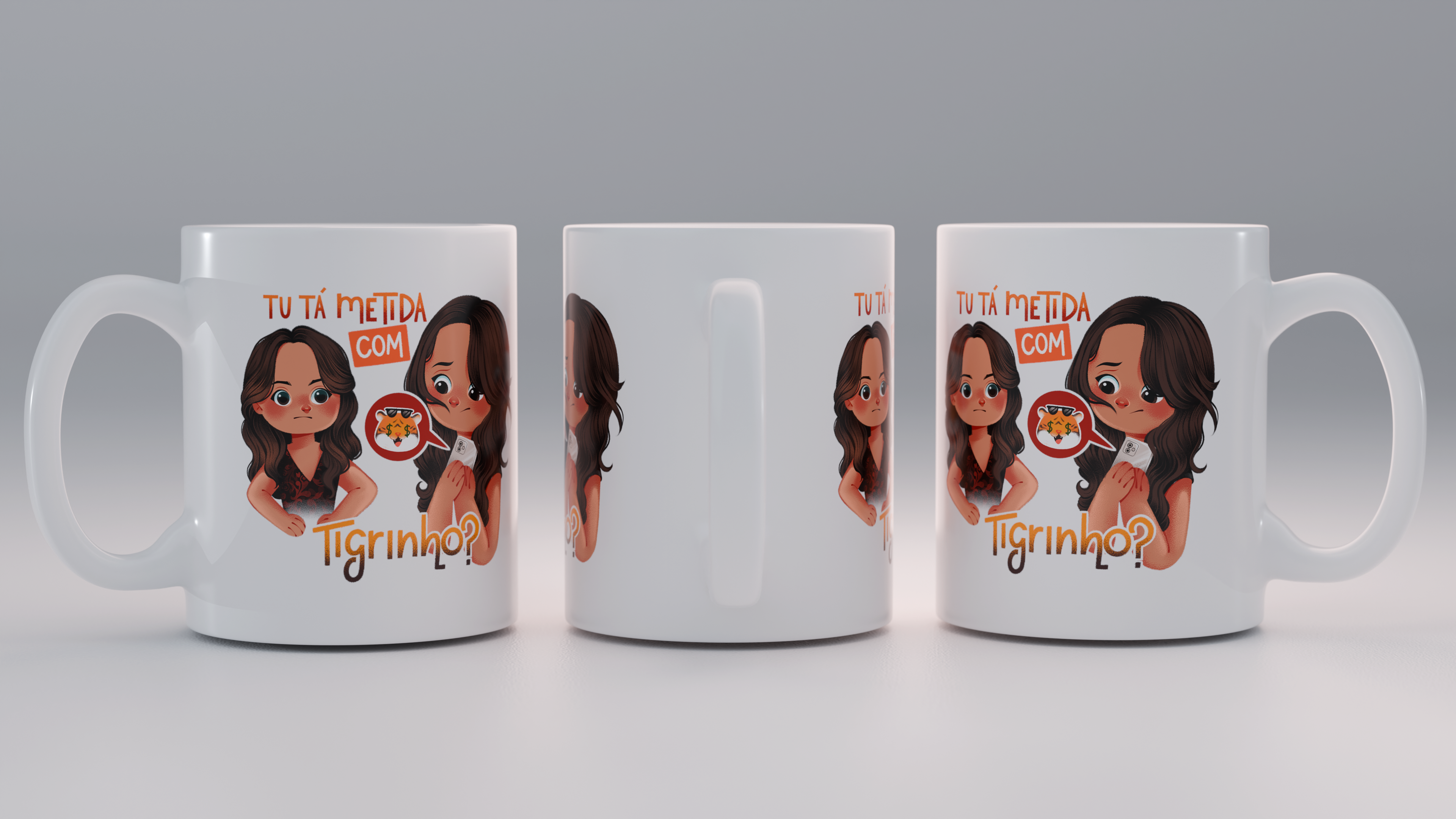Com a caneca Tu Tá Metida com Tigrinho?, até o café da manhã ganha um toque de julgamento silencioso. Inspirada na clássica cena de Salve Jorge, Lucimar lança aquele olhar que atravessa a alma, enquanto Morena disfarça, segurando o celular como quem tem algo a esconder. Uma estampa que mistura humor, nostalgia e um leve aceno para o mundo atual — sem precisar dizer muita coisa. Ideal pra quem aprecia novelas e ironias bem servidas.