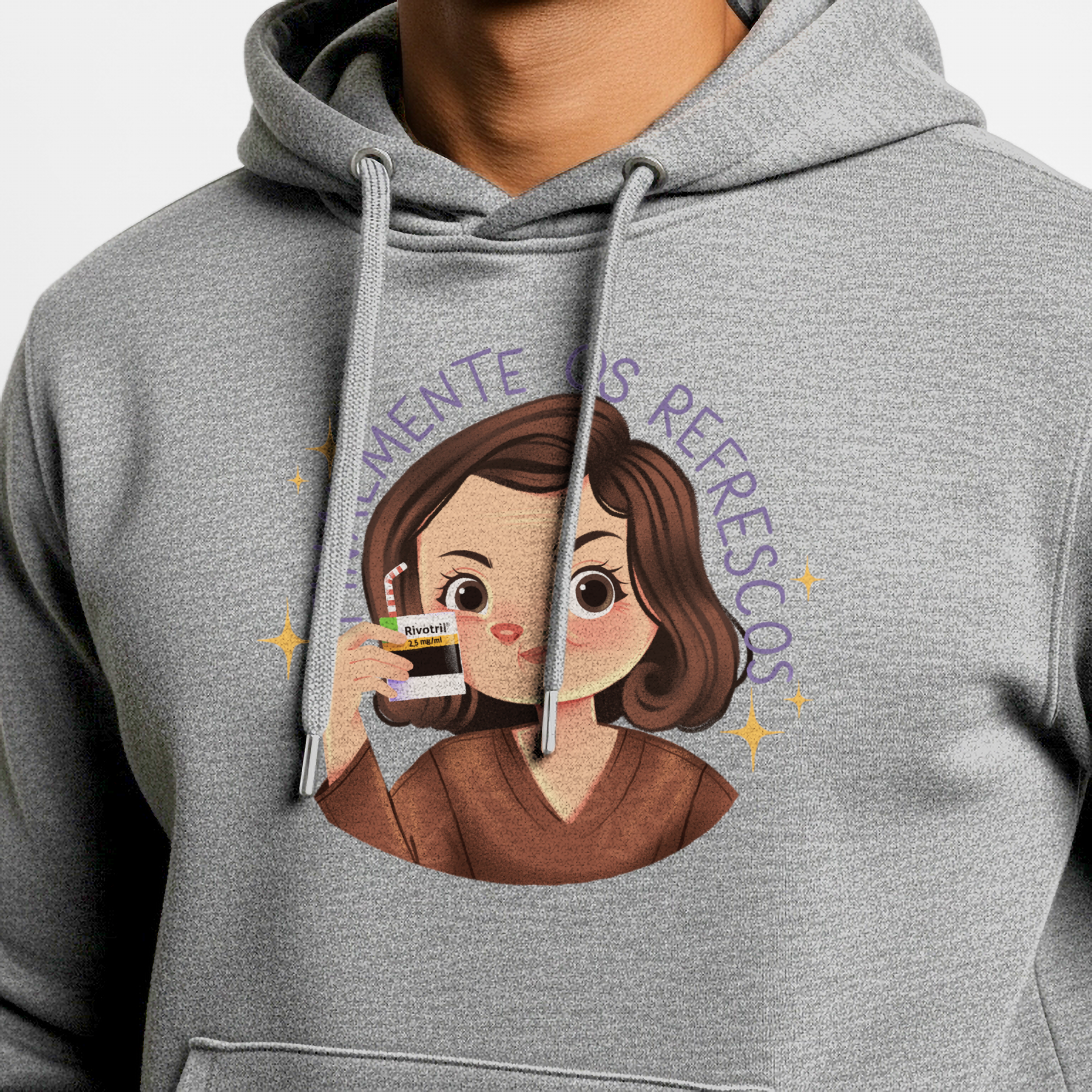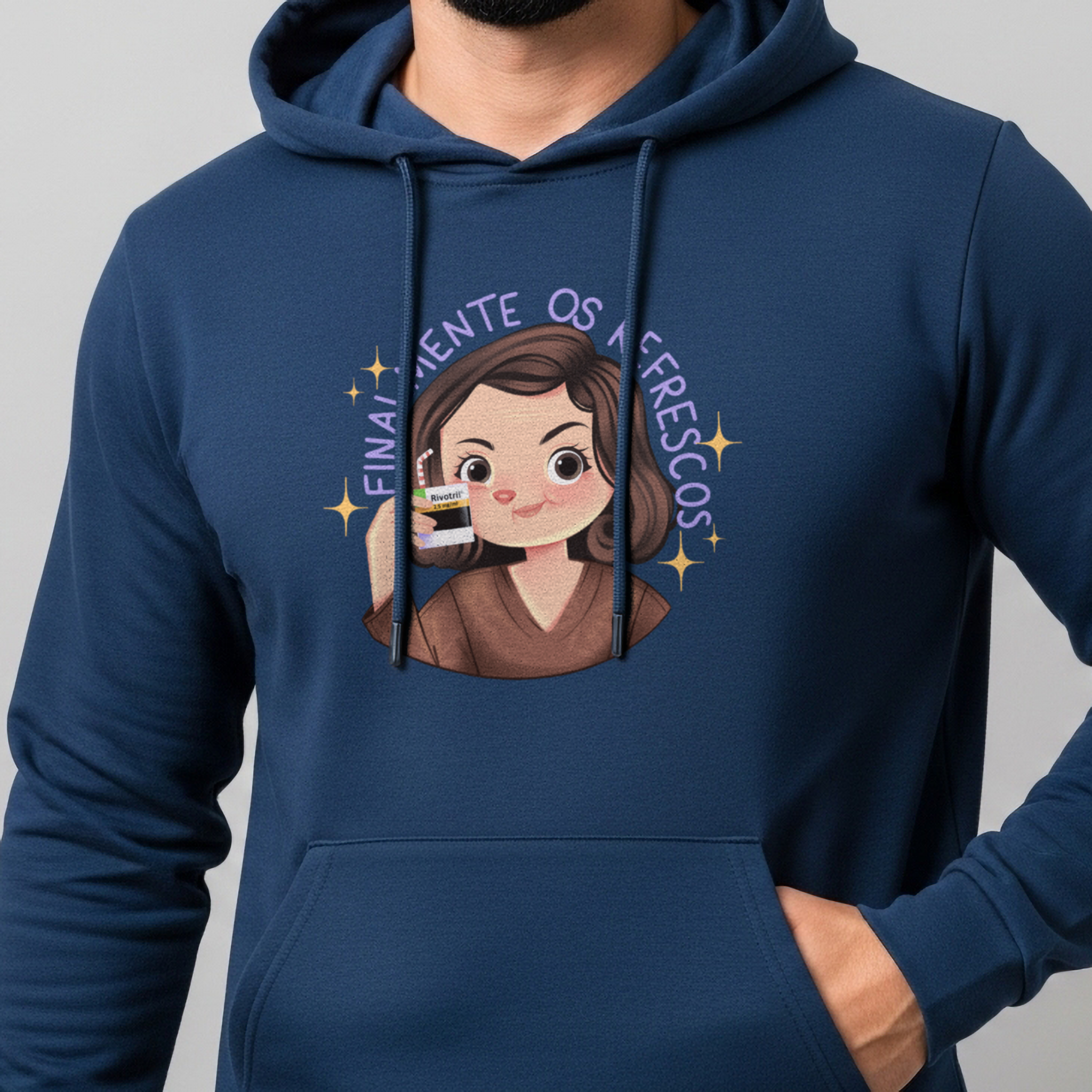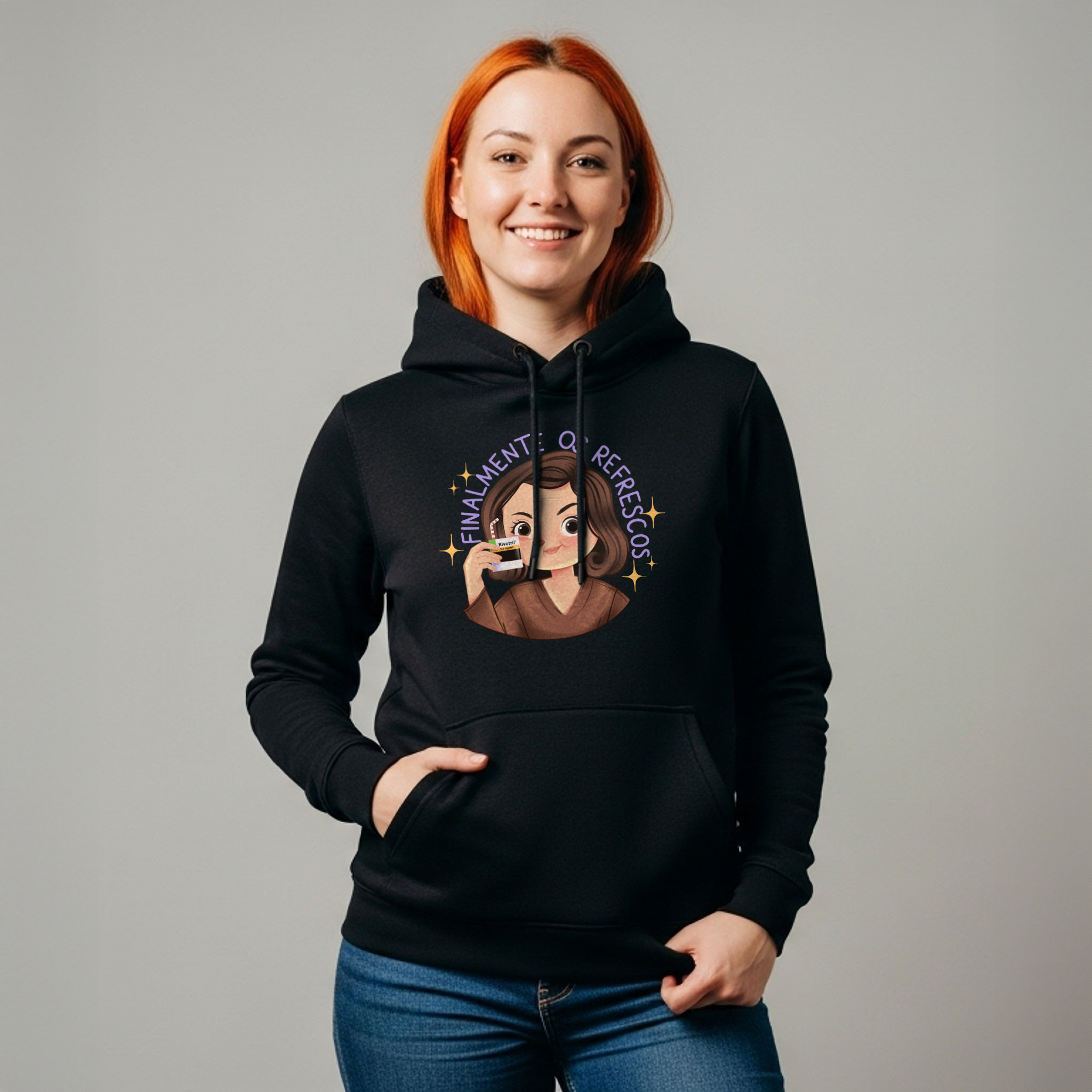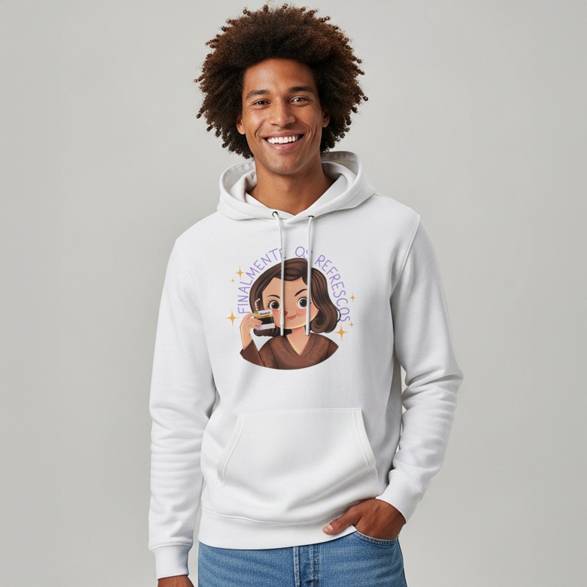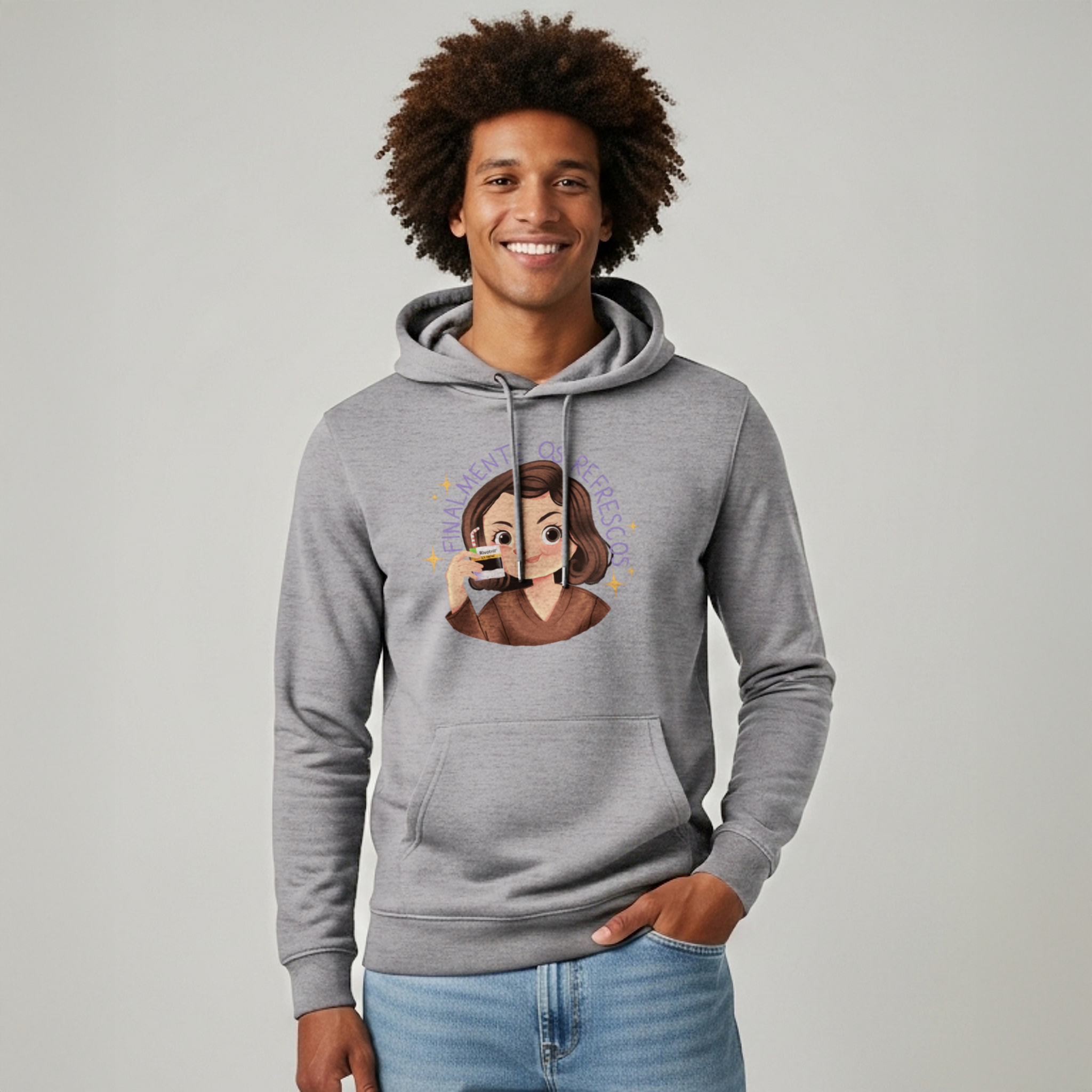 Se a vida adulta fosse fácil, não precisaríamos de refrescos. O moletom Finalmente os Refrescos… da Vida Adulta brinca com o icônico meme de Alma Gêmea, onde Débora (Ana Lúcia Torre) celebra o momento com um suquinho salvador. Só que nesta versão, o refresco vem em dose tarja preta — bem ao gosto de quem enfrenta boletos, prazos e reuniões que poderiam ter sido um e-mail. Ideal para fãs de novelas, cultura pop e humor ácido, esta peça é um lembrete estiloso: viva com drama, mas nunca sem seus "refrescos".